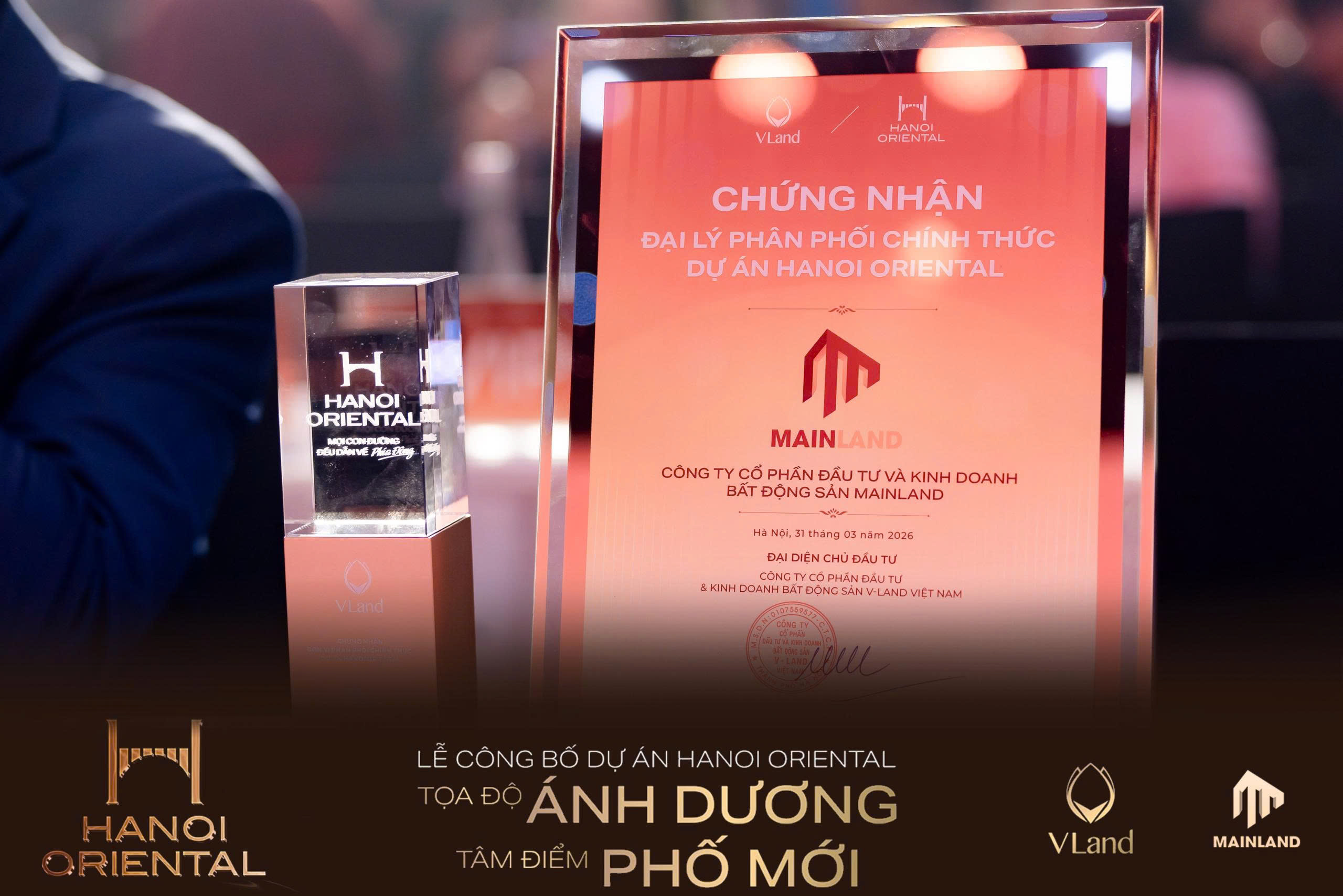 Hanoi Oriental chính thức ra mắt, mở ra một biểu tượng sống thượng lưu tại khu Đông Hà Nội MAINLAND vinh dự được trao chứng nhận Đại lý F1 chính thức, khẳng định vị thế và uy tín trên thị trường bất động sản. Đồng hành cùng MAINLAND, khách hàng sẽ đón đầu cơ hội sở hữu những căn hộ tinh hoa.